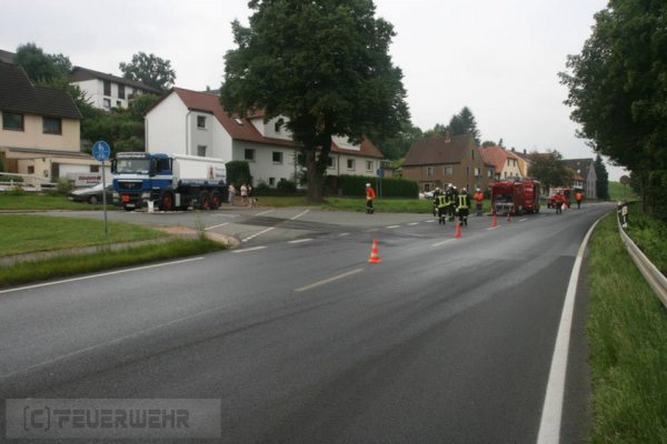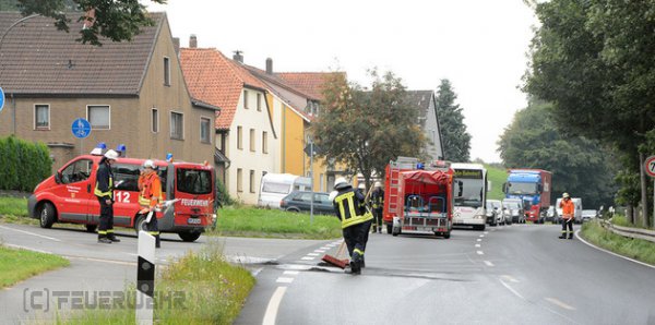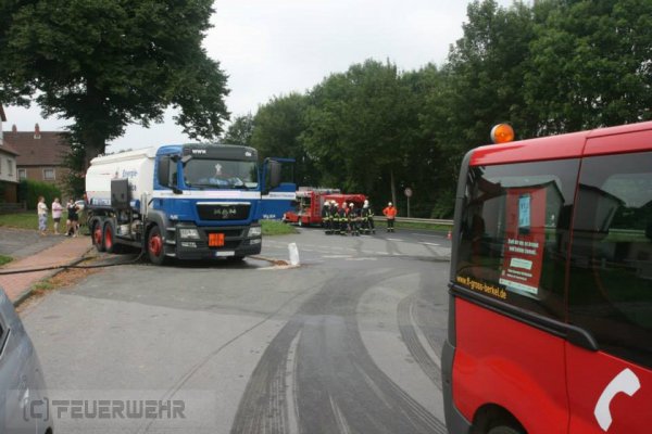 Am Mittwoch, dem 12. August 2015, wurde die Feuerwehr Groß Berkel um 11:23 Uhr erneut zu einer Technischen Hilfeleistung gerufen. Nur gut eine Woche nach dem letzten Hilfeleistungseinsatz, bei dem ein LKW auf der Landesstraße 432 umgekippt war, hieß es nun: "TH Alarm - auslaufende Betriebsstoffe groß: Unter dem Todtenberg *** LKW / laufen ca. 150 Liter Heizöl aus"