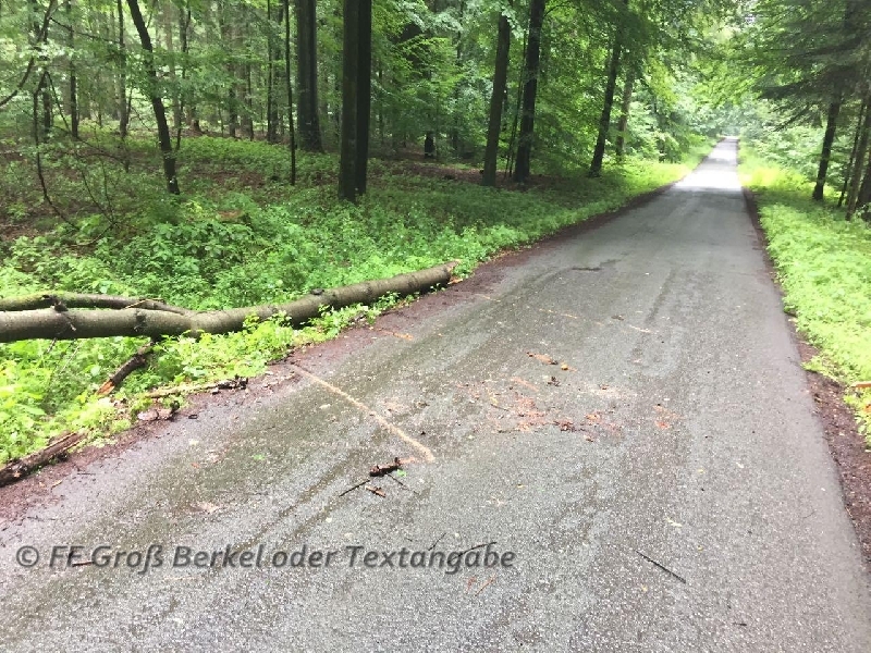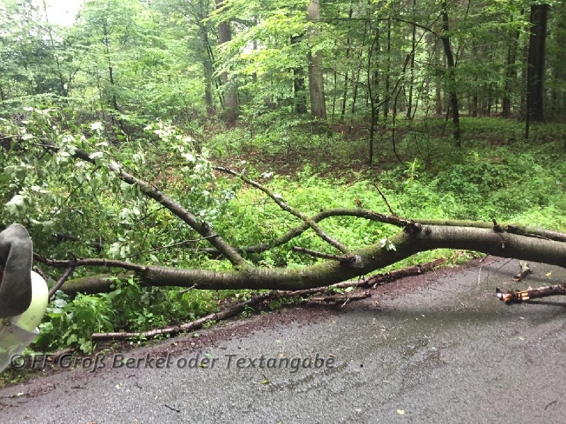 Am Mittwoch, dem 26.07.2017, wurde die Feuerwehr Groß Berkel gegen 11.30 Uhr über Funkmeldeempfänger mit dem Stichwort "TH Einsatz - umgestürzter Baum" auf Nachforderung der Polizei zur Riepenburg alarmiert, da dieser auf der Fahrbahn liegen sollte.