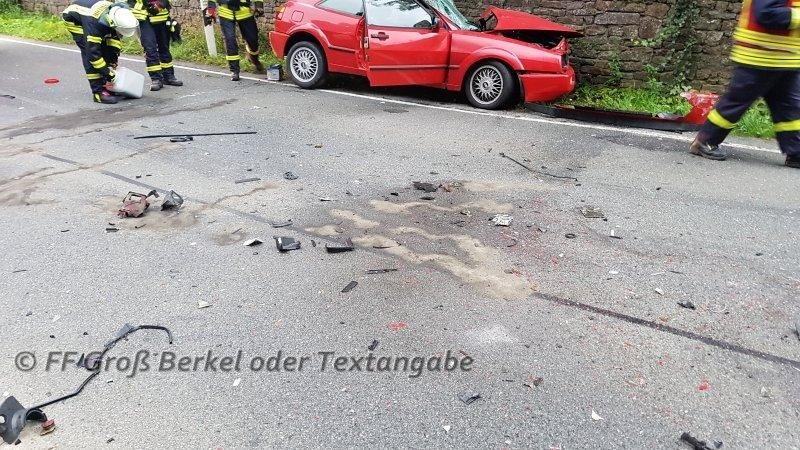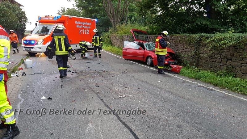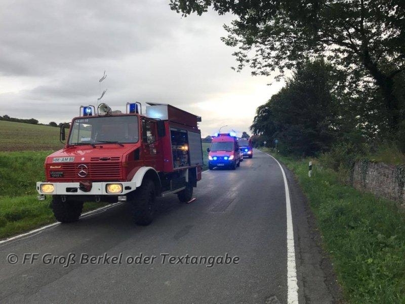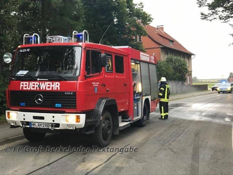 Am Montag, dem 11.09.2017, wurde die Kleinschleife der Feuerwehr Groß Berkel um 07:17 Uhr zu einem Verkehrsunfall nach Schwöbber alarmiert. Das Alarmstichwort war zwar "eingeklemmt", jedoch wurde der Zusatz mitgesendet, dass dies noch fraglich sei.