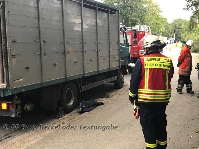 Dadurch beschränkte sich die Arbeit der Feuerwehr auf Verkehrssicherung und das Säubern der Fahrbahn. Zudem wurde der LKW so beschädigt, dass dieser nur noch bedingt fahrbereit war. Die Bremsanlage hatte einen Schaden davon getragen, sodass von einem Groß Berkeler Kameraden die Federspeicherbremse gelöst wurde und der LKW anschließend vom Aerzener Rüstwagen von der Straße geschleppt werden konnte.