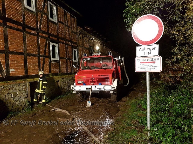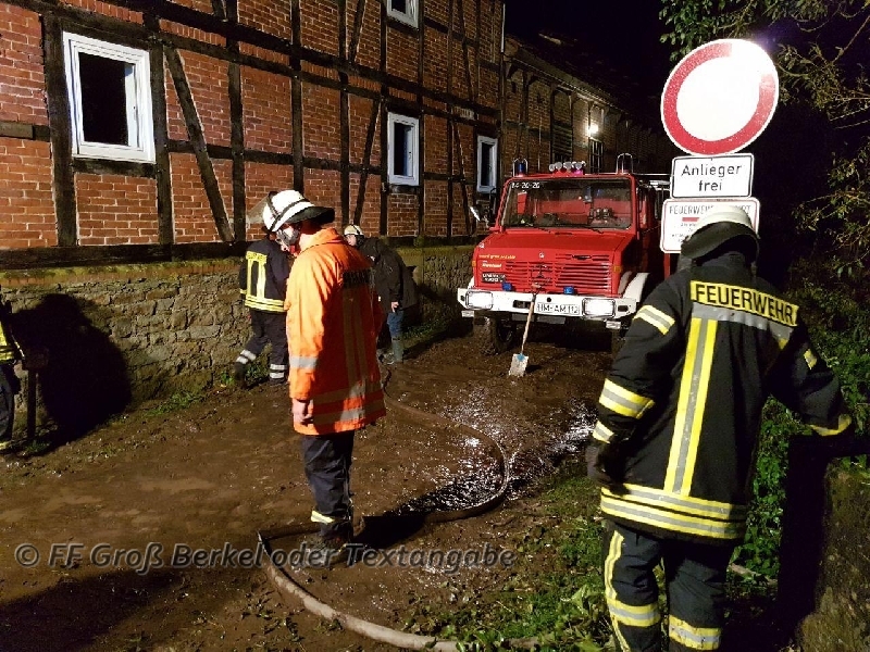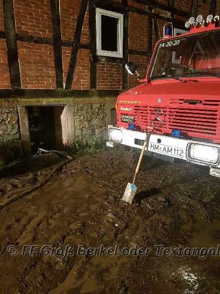 Als sich die Kameraden aus Groß Berkel gerade auf den Rückweg zum Feuerwehrhaus begeben wollten, bekamen sie über Funk die Mitteilung, dass ein paar Meter weiter unterhalb der ersten Einsatzstelle ebenfalls ein Keller vollgelaufen war. So fuhren sie auch diese Einsatzstelle an und unterstützten mit ihren Tauchpumpen die bereits vor Ort befindliche Ortswehr Herkendorf.
