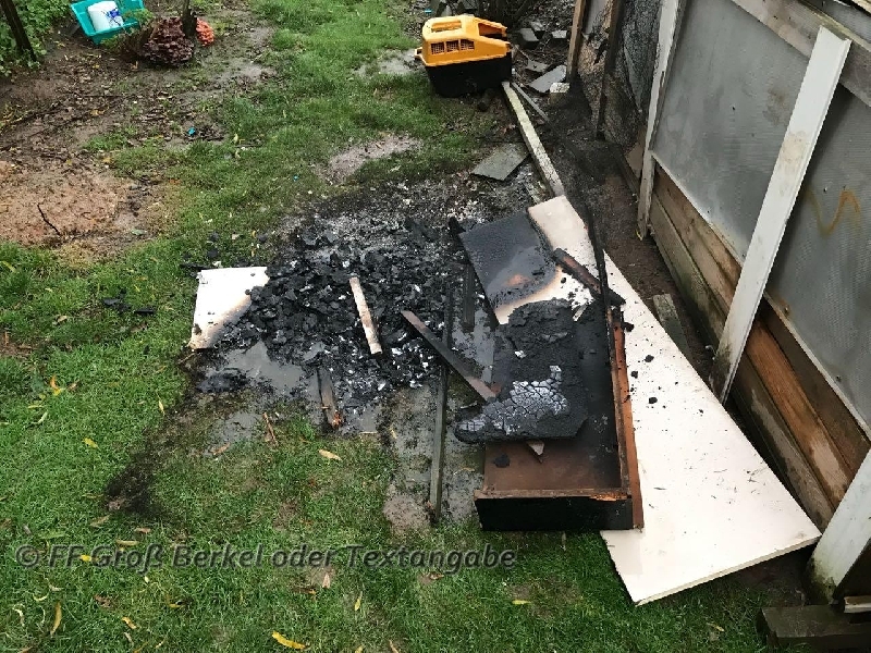 Schon auf der Anfahrt konnte man eine Rauchentwicklung feststellen. An der Einsatzstelle angekommen erkundete der Gruppenführer des LF 8/6 die Lage und stellte fest, dass der Kleingartenbesitzer einen alten Schrank verbrennen wollte. Da nur noch Reste des Schranks übrig waren löschten die Einsatzkräfte diese mit dem Schnellangriff des inzwischen eingetroffenem TLF 8-W ab. Nach Kontrolle der Brandstelle mit der Wärmebildkamera wurde die Schlauchleitung zurück gebaut und die Einsatzstelle an den Eigentümer übergeben.