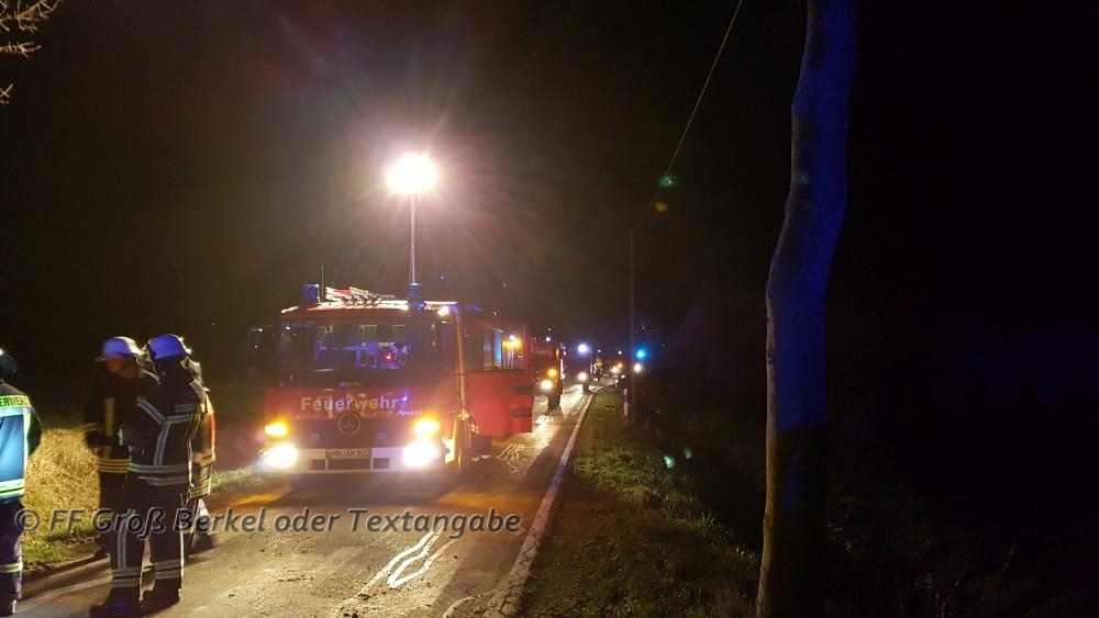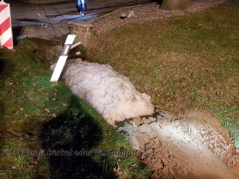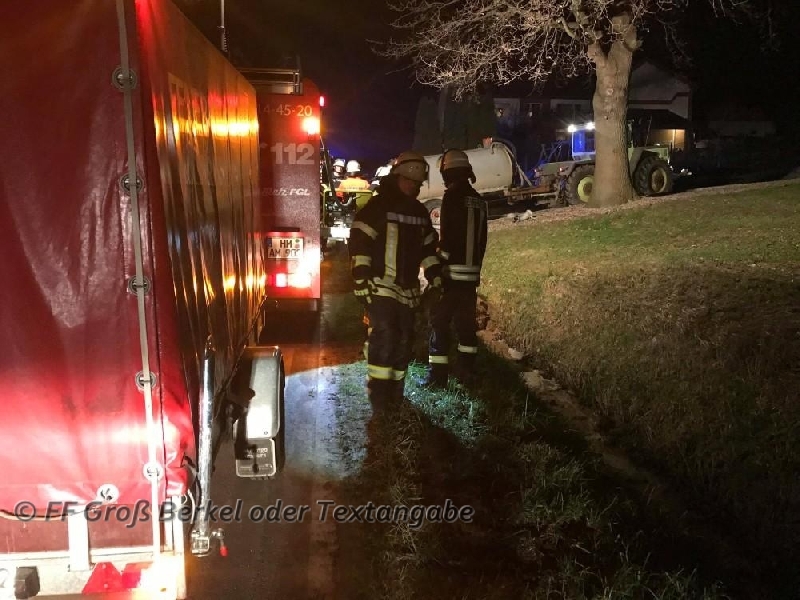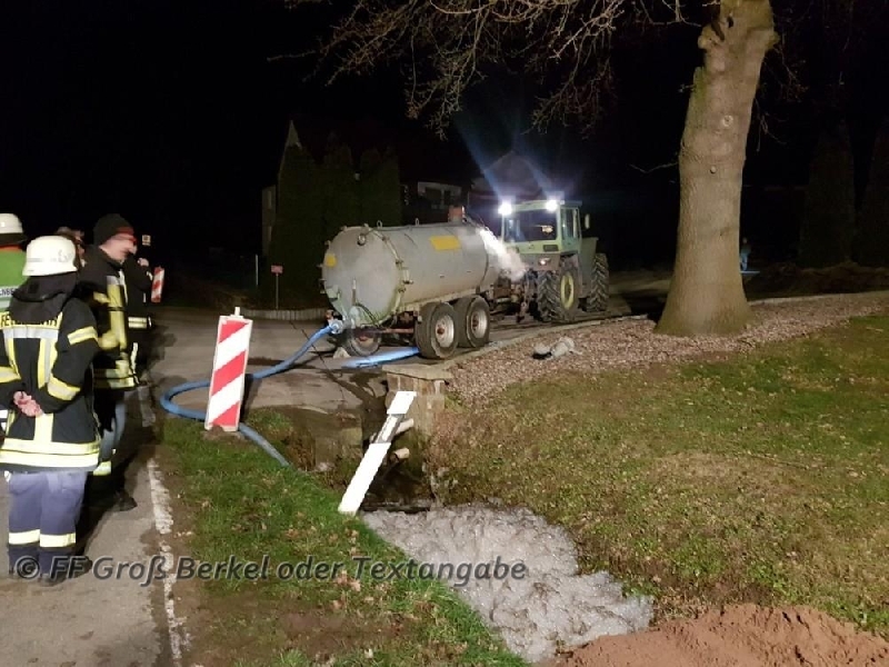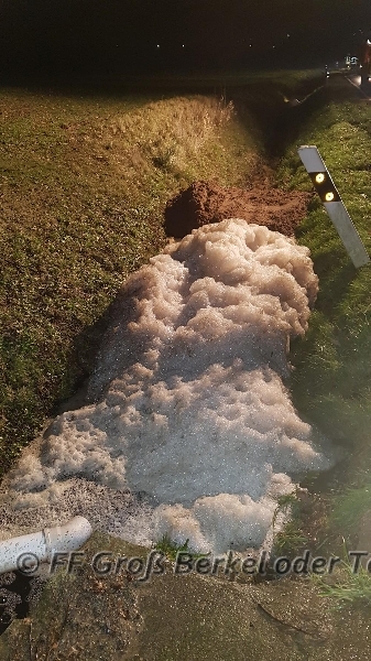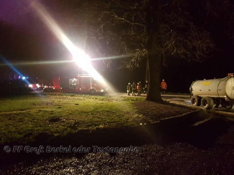 Am Samstag, dem 06.01.2018, wurde die Ortsfeuerwehr Groß Berkel um 20:41 Uhr mit dem Stichwort "TH Einsatz Gewässer" zu ihrem ersten Einsatz des noch jungen Jahres alarmiert. In Waalsen sollte ein Güllebehälter ausgelaufen sein und zu Schaumbildung auf einem Bach geführt haben.