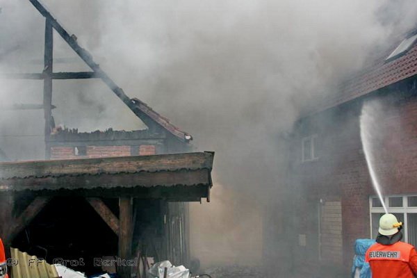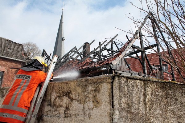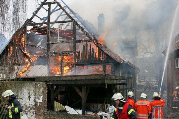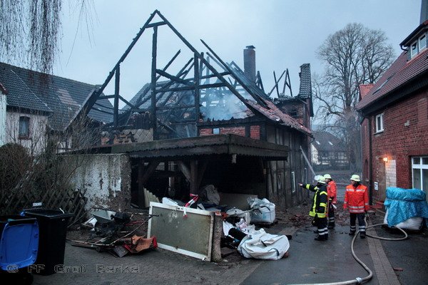 Am Samstag, dem 13.03.2010 wurde die Feuerwehr Groß Berkel um 15:15 Uhr mit dieser Meldung zum Einsatz gerufen. Wie sich heraus stellte, brannte ein Fachwerkhaus in unmittelbarer Nähe der Kirche. Aufgrund der engen Bebauung war schnell klar, dass die eigenen Kräfte hier nicht ausreichen werden.