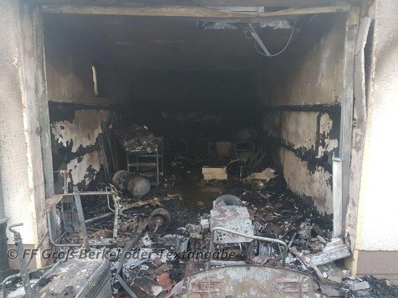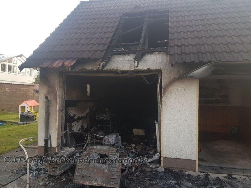 Durch den beherzten Löschangriff konnte zum Glück das Feuer schnell bekämpft werden, ohne dass es sich auf das Wohnhaus ausbreiten konnte. Auch der in der rechten Garage abgestellt PKW konnte somit vor dem Feuer gerettet werden.