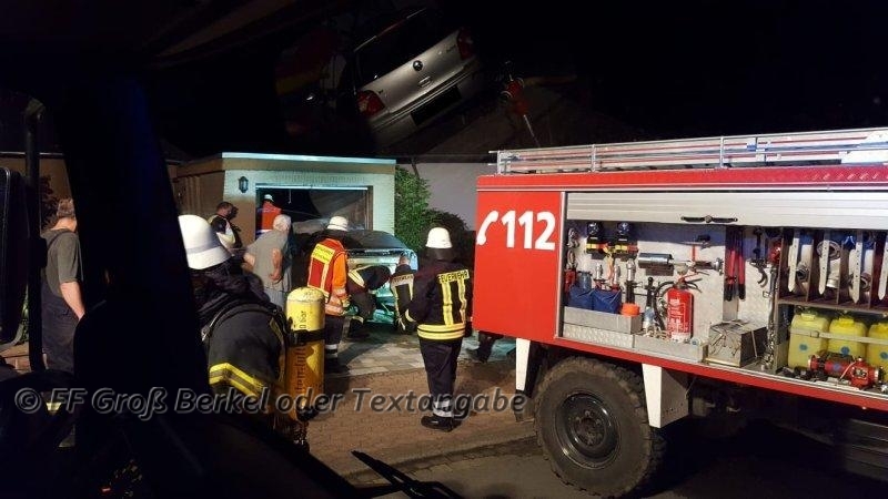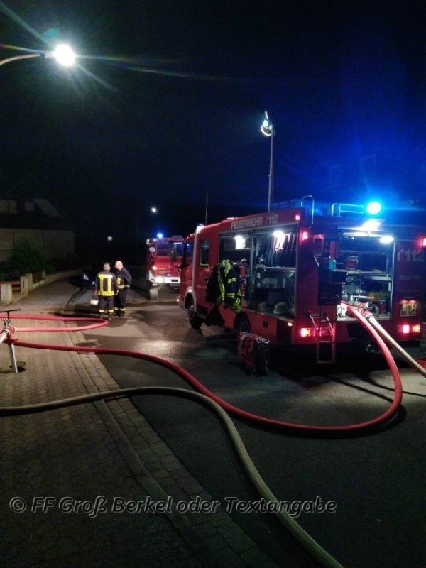 Am Sonntag, dem 10.06.2018, wurde die Feuerwehr Groß Berkel nachts um 0:48 Uhr mit dem Alarmstichwort "FEU Garage, brennt PKW in Garage" in die Straße Am Sportplatz alarmiert.
