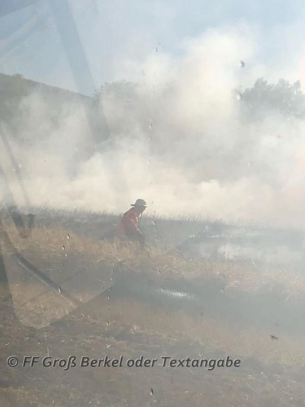 Am Sonntag, dem 01.07.2018, ist die Großschleife der Feuerwehr Groß Berkel mit der Meldung "FEU Fläche groß, brennt Feld / Anhänger auf dem Feld" nach Reinerbeck alarmiert worden. Allen war sofort klar: Jetzt nicht kleckern sonder klotzen - Wasser wird benötigt!