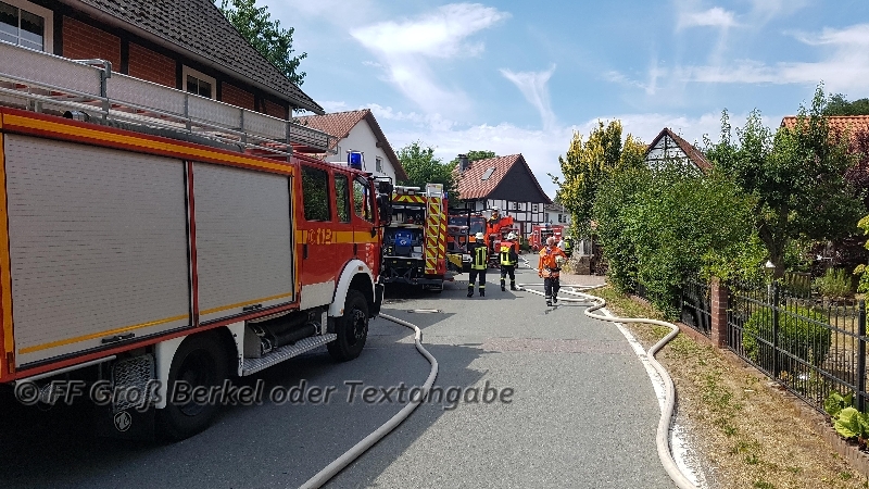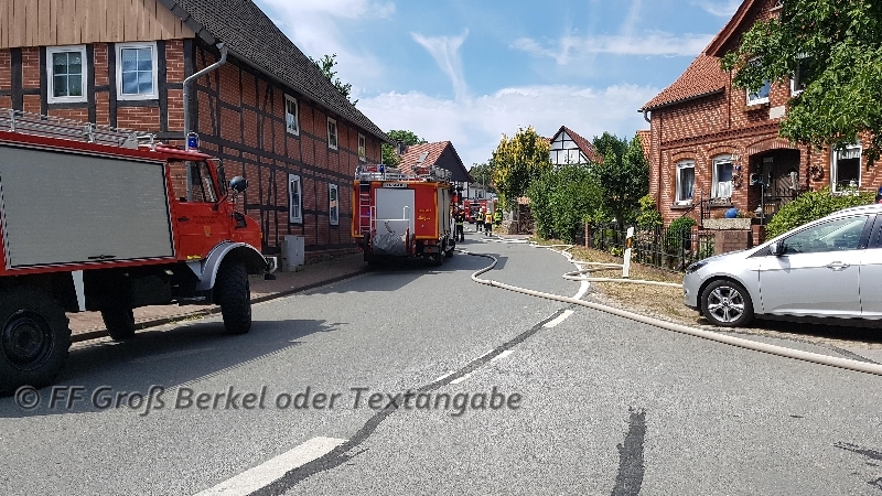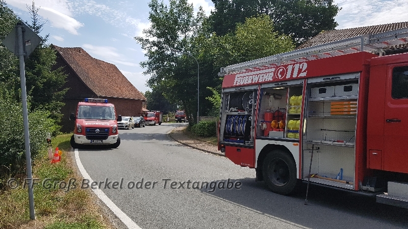Am Dienstag, dem 31.07.2018, wurde die Großschleife der Ortsfeuerwehr Groß Berkel um kurz nach 13.00 Uhr erneut mit dem Einsatzstichwort "FEU Wohnung" alarmiert. Diesmal wurde ein Brand in Dehmke gemeldet, nähere Einzelheiten waren zunächst nicht mitgeteilt worden.