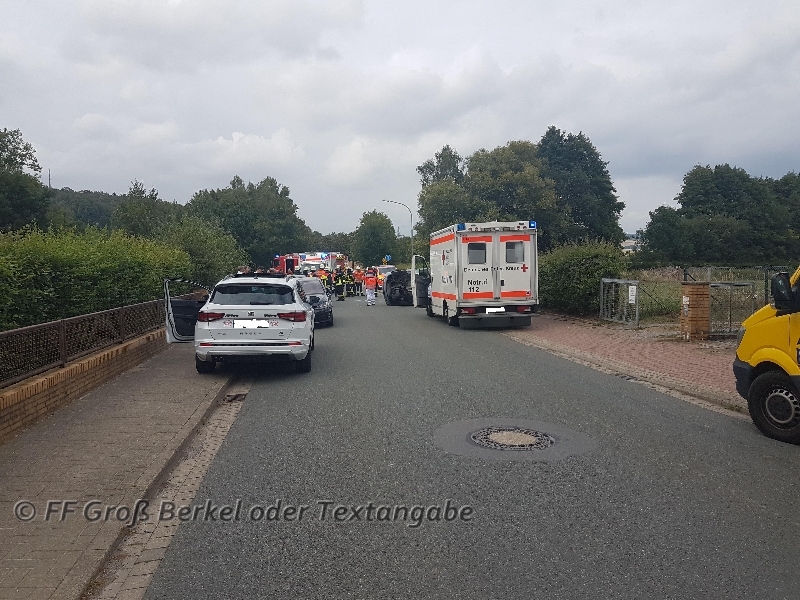 Der zweite Einsatz des Tages führte die Kleinschleife der Feuerwehr Groß Berkel am Montag, dem 20.08.2018, um 17:16 Uhr wieder nach Aerzen. Nicht einmal zwei Stunden nachdem die Groß Berkeler schon einmal alarmiert wurden lautete das Stichwort diesmal „VU eingeklemmt PKW“.
