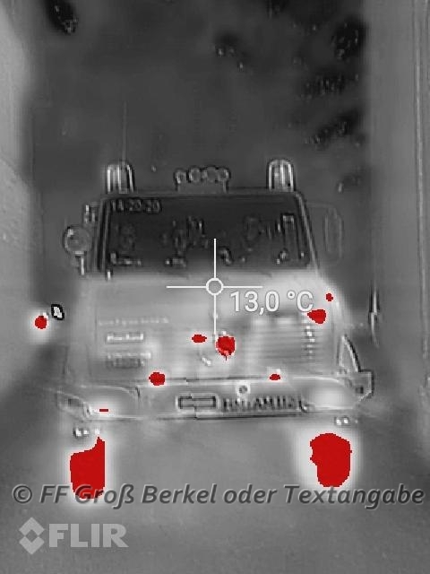 Auf den Bildern 4 und 5 unten sehen Sie unser TLF einmal in "Normalsicht" und danach aufgenommen von einer (Handy-)Wärmebildkamera.