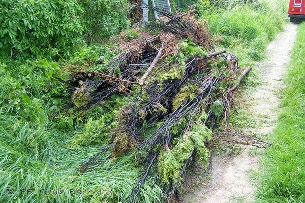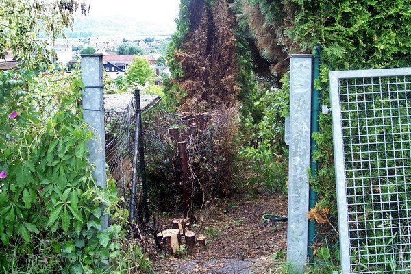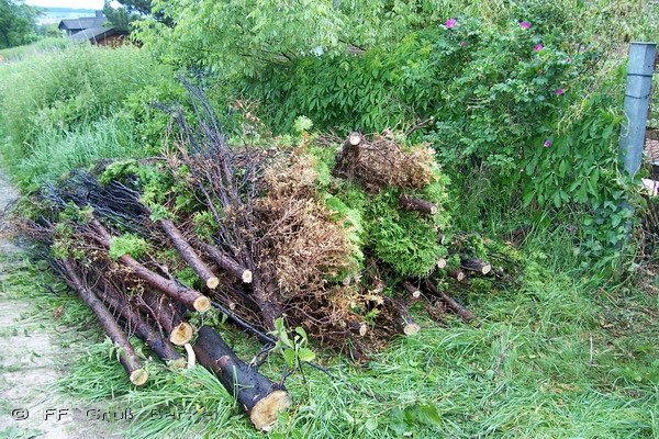 Vor Ort stellte sich heraus, dass mehrere Lebensbäume, die wie eine Hecke dicht an dicht standen, in Brand geraten waren. Von der Rückseite des Grundstücks aus wurden dann zunächst die Flammen gelöscht. Um aber auch an letzte Glutnester zu kommen, kam unsere Motorkettensäge zum Einsatz. Mit ihrer Hilfe wurden dann die Sträucher abgesägt, sodass dann auch die letzte Glut abgelöscht werden konnte.