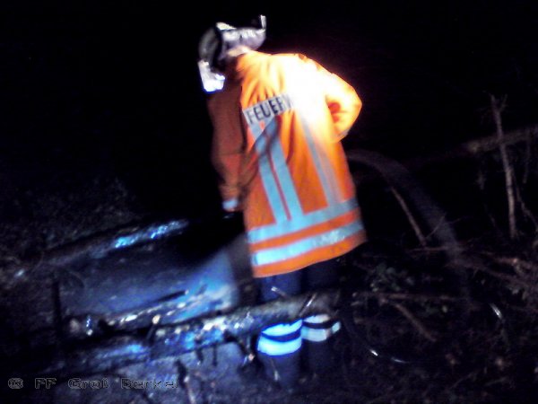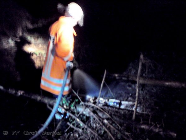Nachdem der OrtsBM zusammen mit seinem Stellvertreter die Lage erkundet hatten, wurden zunächst das TLF und später auch das LF 8/6 vorgezogen und haben ca. 100 m hinter dem Gelände des Schullandheims am Fahrbahnrand eine mehrere Meter lange in Brand geratene Fläche des Waldbodens abgelöscht. Die weiteren Fahrzeuge der Ortswehr Groß Berkel konnten zu diesem Zeitpunkt bereits die Einsatzstelle verlassen.