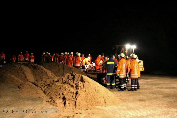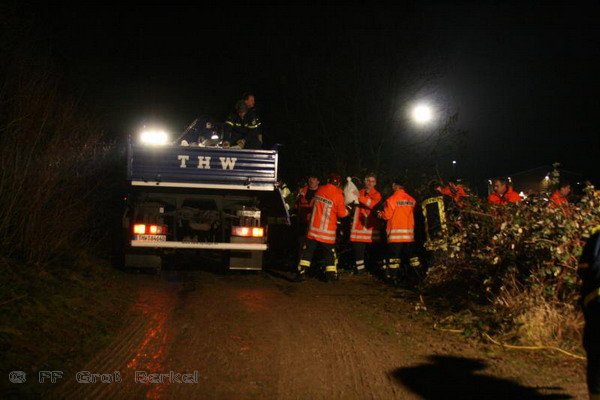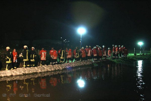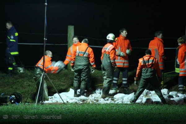 Inzwischen hatten auf dem Gelände der Straßenmeisterei in Emmern, die in Sichtweite zu dem Deich liegt, zivile LKW damit begonnen, tonnenweise Sand abzukippen. Im Pendelverkehr wurden in dieser Nacht insgesamt 120 Tonnen Sand herangeschafft und verarbeitet.