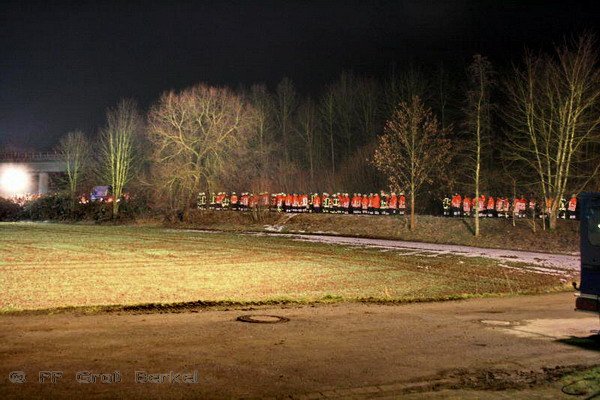 In Anbetracht der sich abzeichnenden Lage und möglicher weiterer Einsatzstellen ließ Kreisbrandmeister Frank Wöbbecke gegen 22:00 Uhr die Technische Einsatzleitung (TEL) des Landkreises Hameln-Pyrmont alarmieren. Diese Komponente zur Führungsunterstützung ist in der Lage, große Einheiten an ausgedehnten Einsatzstellen über einen längeren Zeitraum zu führen. Sie sollte zunächst die Lage aufnehmen, um dem Kreisbrandmeister als Führungskomponente zur Verfügung stehen zu können, falls sich die Situation verschlechterte. Danach löste Wöbbecke Alarm für die Kreisfeuerwehrbereitschaft „Ost“ aus. „Schaufeln mitbringen!“ war auf den digitalen Funkmeldeempfängern zu lesen. Mit 130 Einsatzkräften und 18 Fahrzeugen machten sich die Freiwilligen auf den Weg zu den Sammelpunkten, um dann zugweise geschlossen die Einsatzstelle anzufahren.