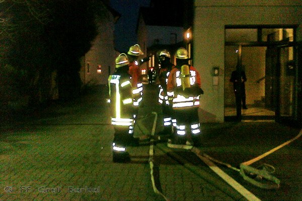 Am Donnerstagabend wurde die Feuerwehr Groß Berkel um 18:24 Uhr per Sirene und Funkmeldeempfänger zu einem Brandeinsatz nach Aerzen gerufen. Das Einsatzstichwort "Feuer2 Feuermeldung Altbau Volksbank Aerzen" ließ darauf schließen, dass dort sicherlich Atemschutzgeräteträger benötigt wurden. Und so rüsteten sich einige Kameraden bereits auf der Anfahrt zur Einsatzstelle mit Atemschutzmaske und Pressluftatmer aus.
