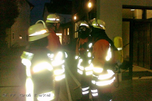 Die Orstfeuerwehr Aerzen hatte inzwischen im Erstangriff mit der Rettung der vermissten Personen begonnen und die "Brandbekämpfung" eingeleitet. Zur Unterstützung wurde dann auch die Ortsfeuerwehr Groß Berkel mit Atemschutzgeräteträgern zunächst als Sicherheitstrupp eingesetzt, während weitere Kameraden einen mobilen Rauchverschluss im Gebäude anbrachten, sodass die bisher nicht verqualmten Räume auch rauchfrei blieben.