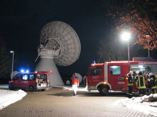 Am Sonntagabend um 22:29 Uhr wurde die Ortswehr Groß Berkel durch Meldeempfänger und Sirene zur Erdfunkstelle Groß Berkel alarmiert. Die Leitstelle Hameln hatte als erste Meldung "Feuer1 - 2. große Antenne rechts, unklare Rauchentwicklung Keller" mitgeteilt.
