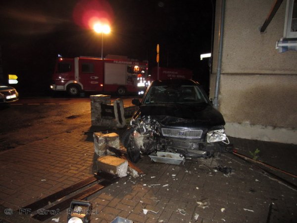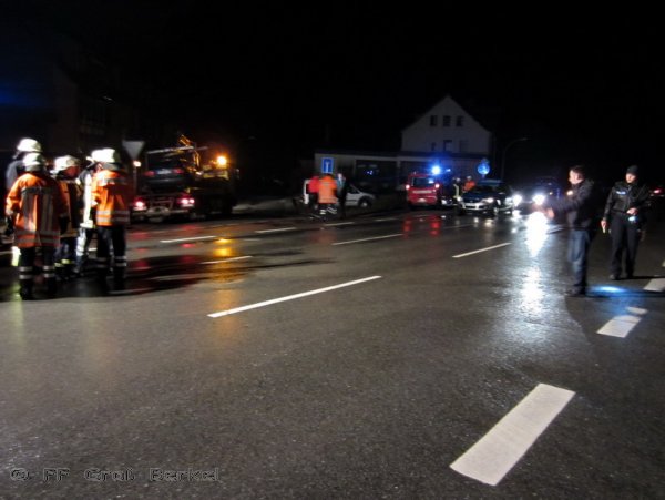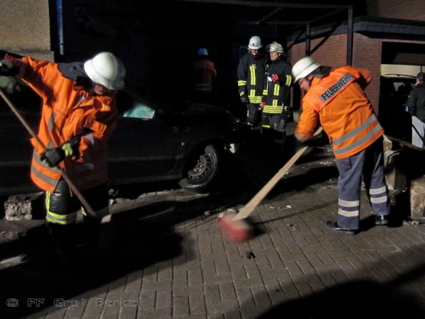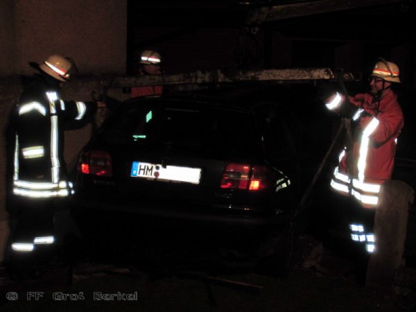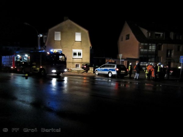 Am frühen Freitagmorgen wurde die Ortswehr Groß Berkel um 01:46 Uhr durch die Leitstelle unsanft aus den Träumen gerissen. Ein PKW war quer über die B1 und weiter über eine Bruchsteinmauer mit Lattenzaun hinweg gefahren und anschließend im Vorgarten direkt an einem Haus gelandet.