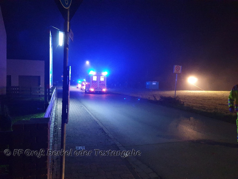 Dort wurde durch den Rettungsdienst ein Hubschrauber angefordert der einen Patienten in ein Krankenhaus fliegen sollte. Die Ortswehr Groß Berkel leuchtet dafür einen Landeplatz im Ort aus. Aufgrund der schlechten Wetterlage konnte der Hubschrauber jedoch nicht im Ort landen, so dass er weiter zum Sana Klinikum flog um den Patienten dort aufzunehmen. Dadurch waren keine weiteren Maßnahmen seitens der Feuerwehr erforderlich.