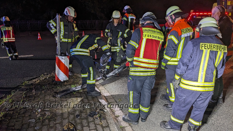 In der Nacht zum Sonntag wurde die Feuerwehr Groß Berkel erneut alarmiert. Dieses Mal hieß das Einsatzstichwort "H0: auslaufende Betriebsstoffe klein". Eine Person sollte nach Angaben der Leitstelle frontal mit seinem Fahrzeug kollidiert sein. Wobei es sich um das Kollisionsobjekt und den genauen Einsatzort handelte, war bis zum Zeitpunkt der Alarmierung jedoch nicht bekannt.