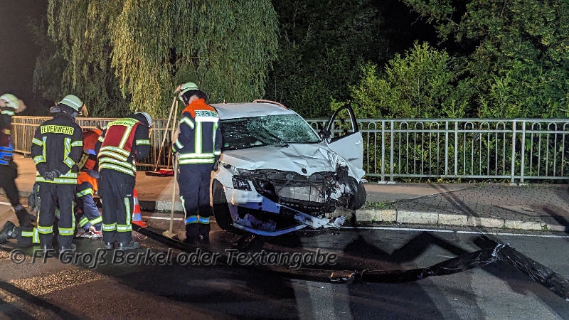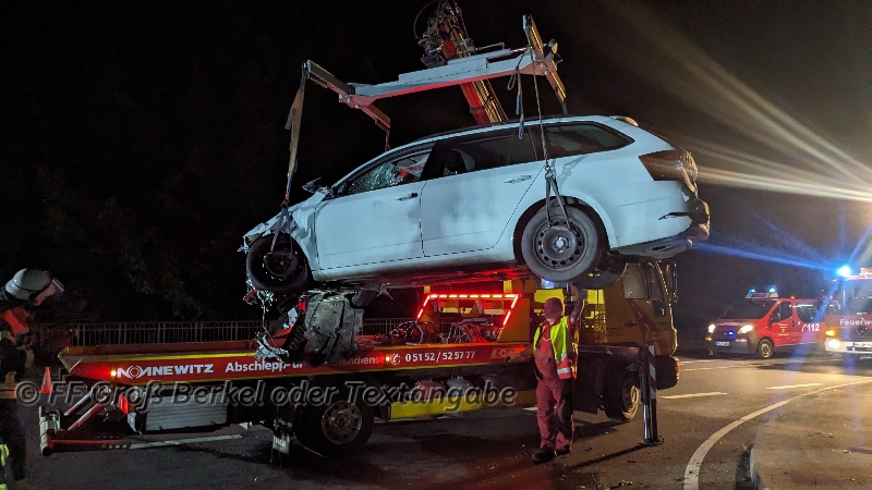 Als die Kräfte der Feuerwehr an der Unfallstelle eintrafen, bestätigte sich die Meldung. Der PKW ist, aus Aerzen kommend, in Höhe der Kreuzung Hamelner Straße/ Dorfstraße, von der Fahrbahn abgekommen. Er prallte gegen eine Straßenlaterne und Verkehrsschilder, bevor er auf der gegenüberliegenden Seite zum stehen kam. Die Feuerwehr Groß Berkel sicherte die Unfallstelle und klemmte die Batterie ab. Zudem wurde im weiteren Verlauf die Laterne mit einer hydraulischen Schere entfernt.